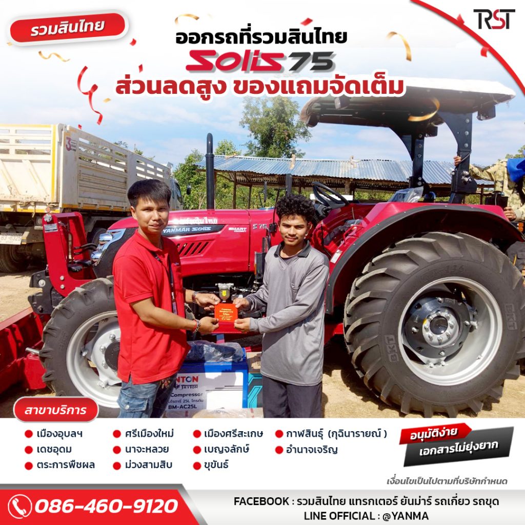 รวมสินไทยแทรกเตอร์ ขอขอบพระคุณลูกค้าคนสำคัญ ที่ไว้วางใจเลือกเป็นเจ้าของ Yanmar Solis 75 ด้วยเงินสดป้ายแดง